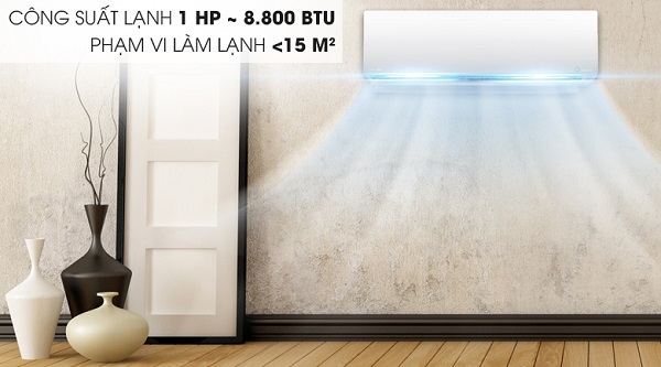 Công suất làm lạnh 1 HP phù hợp cho các căn phòng có diện tích dưới 15m2.