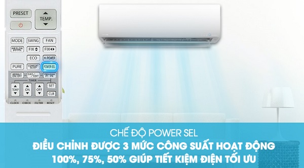 Toshiba RAS-H10G2KCVP-V 1 HP có thêm chế độ Power Sel cho phép bạn điều chỉnh cách sử dụng năng lượng của máy tùy theo số người trong căn phòng ở 3 mức (100%, 75% và 50%). Điều này giúp máy lạnh chủ động kiểm soát được dòng điện cũng như ngăn chặn trường hợp mất điện do quá tải gây ra. Đồng thời tiết kiệm điện năng tiêu thụ, cắt giảm tiếng ồn từ dàn nóng và tăng độ bền cho máy.