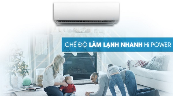 Để không phải mất quá nhiều thời gian chờ đợi có làn khí lạnh thì với chiếc máy lạnh này chỉ cần nhất nút Powerful trên remote, máy lạnh sẽ ngay lập tức đẩy mạnh công suất hoạt động, nhanh chóng làm mát căn phòng của bạn chỉ trong tích tắc.
