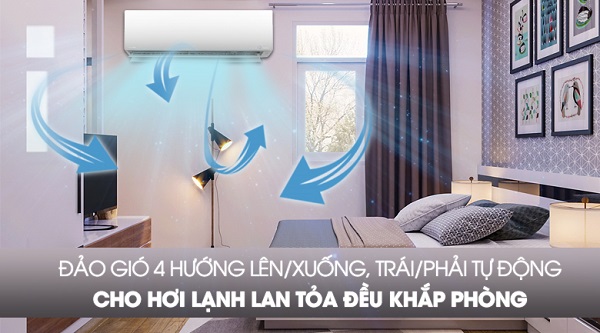 Đảo gió 4 hướng lên/ xuống, trái/ phải tự động tiện lợi