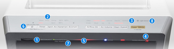 Các bộ phận của máy lọc không khí và tạo ẩm Panasonic F-VXK70A như sau: