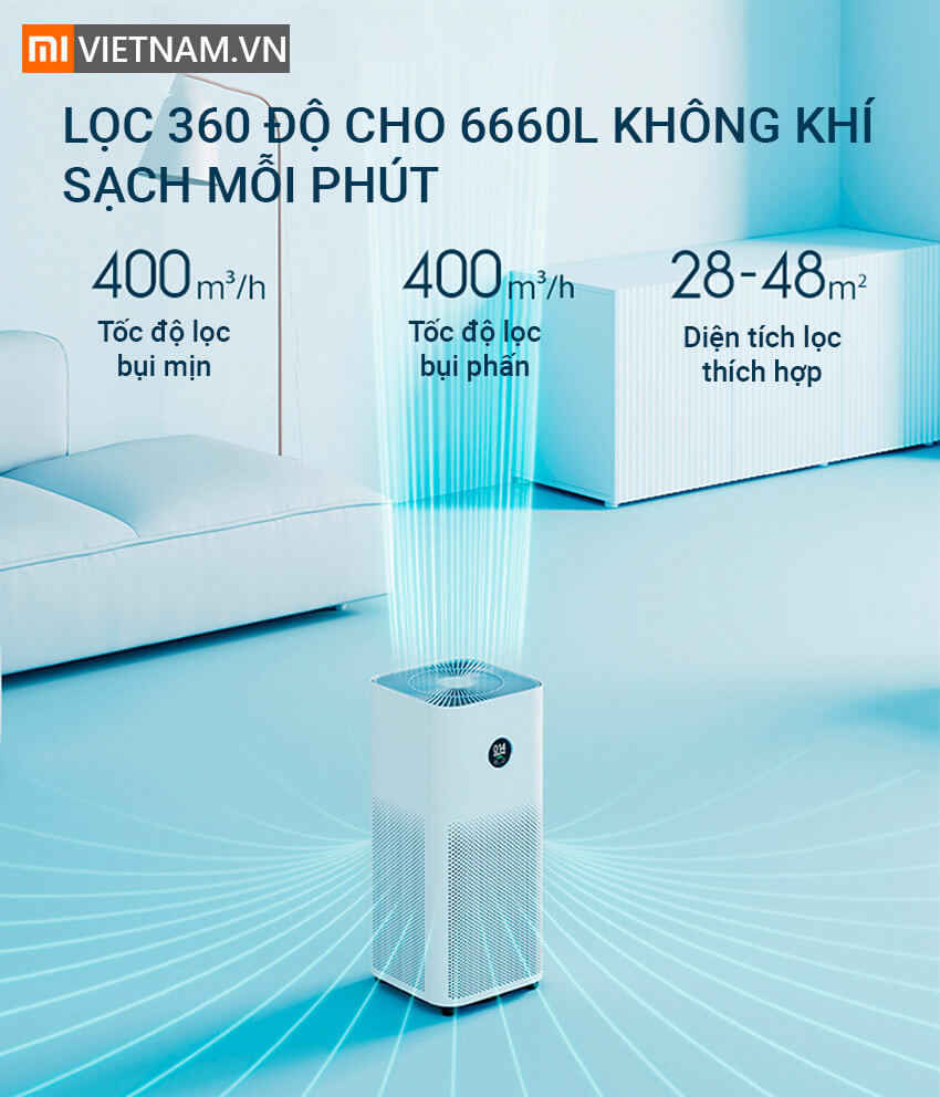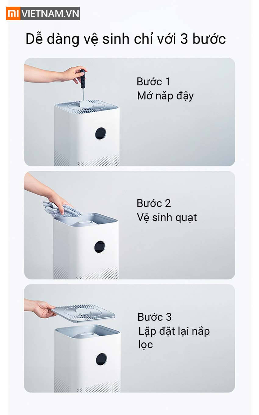 - Máy lọc không khí Xiaomi Mi Air Purifier 4 có thiết kế hệ thống lọc 3 trong 1, đơn giản