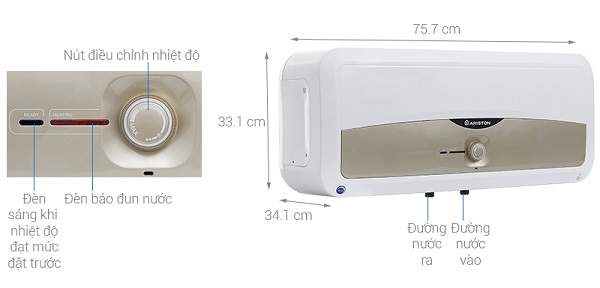 Máy Nước Nóng Gián Tiếp Ariston SL 30 ST 2.5 FE - MT có thết kế đơn giản với màu trắng và vàng kết hợp hài hòa nhưng không kém phần sang trọng và mạnh mẽ. Dù được đặt ở bất kỳ vị trí nào, Ariston SL 30 ST 2.5 FE - MT chắc chắn cũng sẽ làm nổi bật không gian ngôi nhà tắm của bạn. Máy nước nóng có dung tích đến 30 lít đáp ứng hoàn hảo cho nhu cầu sử dụng của gia đình 3-5 thành viên.