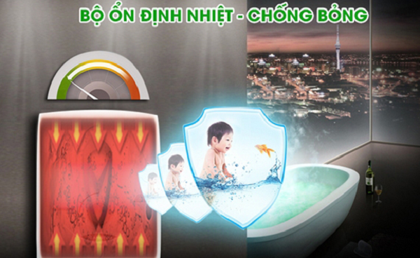 Máy nước nóng được trang bị một hệ thống chống bỏng thông minh có khả năng đảm bảo cho nhiệt độ của nước luôn ở mức giới hạn cho phép, cho bạn và gia đình hoàn toàn yên tâm vì làn da được bảo vệ một cách an toàn.