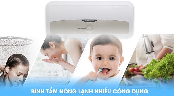 Chỉ với 1 chiếc bình tắm nóng lạnh Ariston mà gia đình bạn có thể chia thành nhiều đường dẫn nước sử dụng cho rất nhiều sinh hoạt khác, với nhiệt độ dòng nước được tùy chỉnh theo từng nhu cầu: tắm, rửa mặt, rửa sạch rau, củ, trái cây....