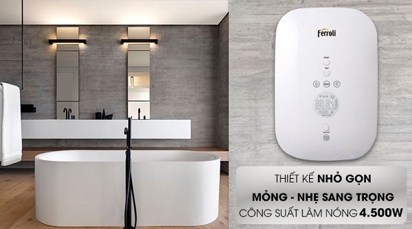 Máy nước nóng Ferroli DIVO SDN được thiết kế với kiểu dáng đẹp mắt, gọn nhẹ, siêu mỏng, tiết kiệm không gian lắp đặt máy. Công suất 4.5 kW bảo đảm hiểu quả làm nóng nhanh tức thì, giúp người dùng không cần chờ đợi.
