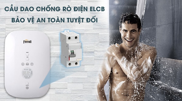 Để đảm bảo an toàn cho người sử dụng, máy nước nóng Ferroli có tích hợp chức năng chống giật điện, khi phát hiện rò rỉ điện vượt quá 15 mA, công tắt tiết lưu sẽ tự động ngắt mạch điện tức thời. Bạn hoàn toàn có thể yên tâm sử dụng máy nước nóng mà không phải quá lo lắng về các sự cố về điện. (Xem thêm Chế độ cách ly dòng điện)