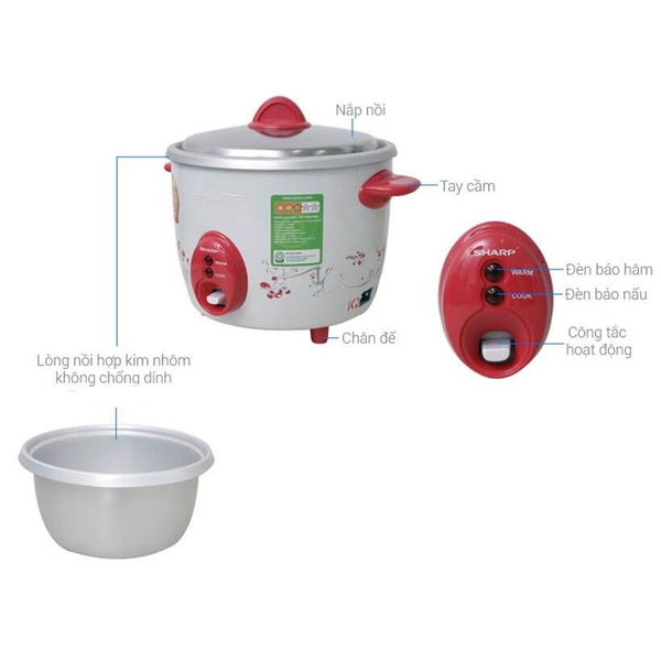 Nồi cơm điện Sharp 1.8 lít KSH-D18V trang bị lòng nồi làm nằng nhôm bền bỉ có khả năng giữ ấm lên đến 5 giờ.
