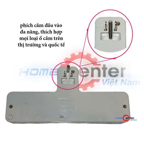 + Ổ cắm chia đa năng cắm được hầu hết các loại phích cắm trên thế giới. Mỗi lỗ cắm có nắp che an toàn tránh cho tay vào bên trong. Lỗ cắm nhíp đàn hồi ôm chân phích cắm rất chắc chắn.