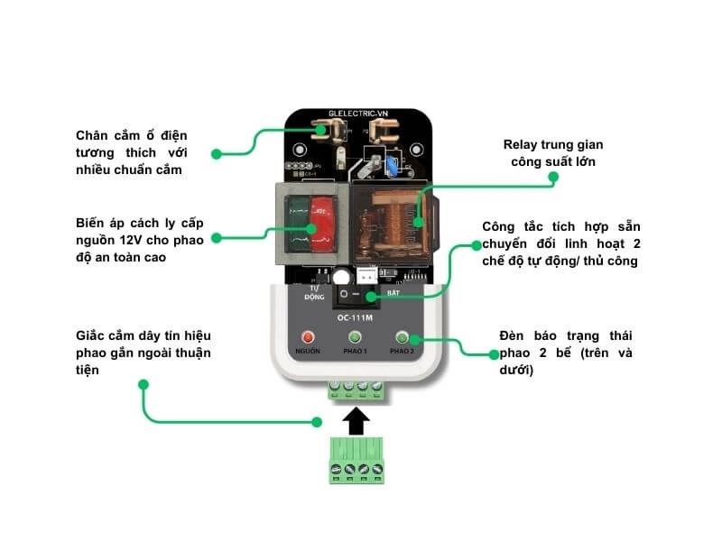 Tương thích với phao điện tử GL2A, GL2B của GLELECTRIC và các loại phao công tắc phổ biến trên thị trường.