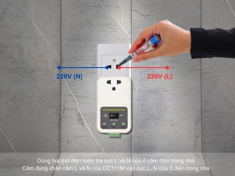 Do vậy cần kiểm tra xác định cực L và N của ổ điện trong nhà trước khi cắm ổ cắm OC111M vào