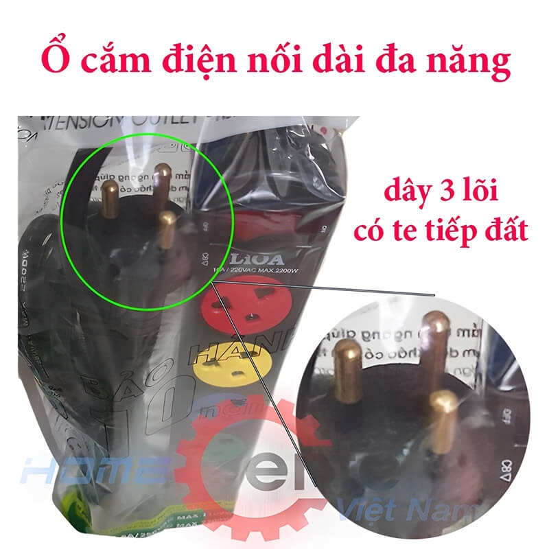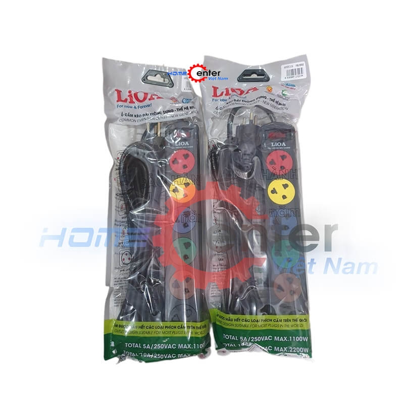 Ổ cắm điện nối dài Lioa 6SND5.3.10 / 6SND3.3.10 có 6 ổ đa năng thích hợp mọi phích cắm trên thế giới, dây dài 5 mét hoặc 3 mét, điều khiển tắt mở bởi 1 công tắc, và có công suất lên đến 2.200W, đặc biệt dây có 3 lõi, phích cắm có chân tiếp địa, dùng trong những trường hợp đặc biệt.
