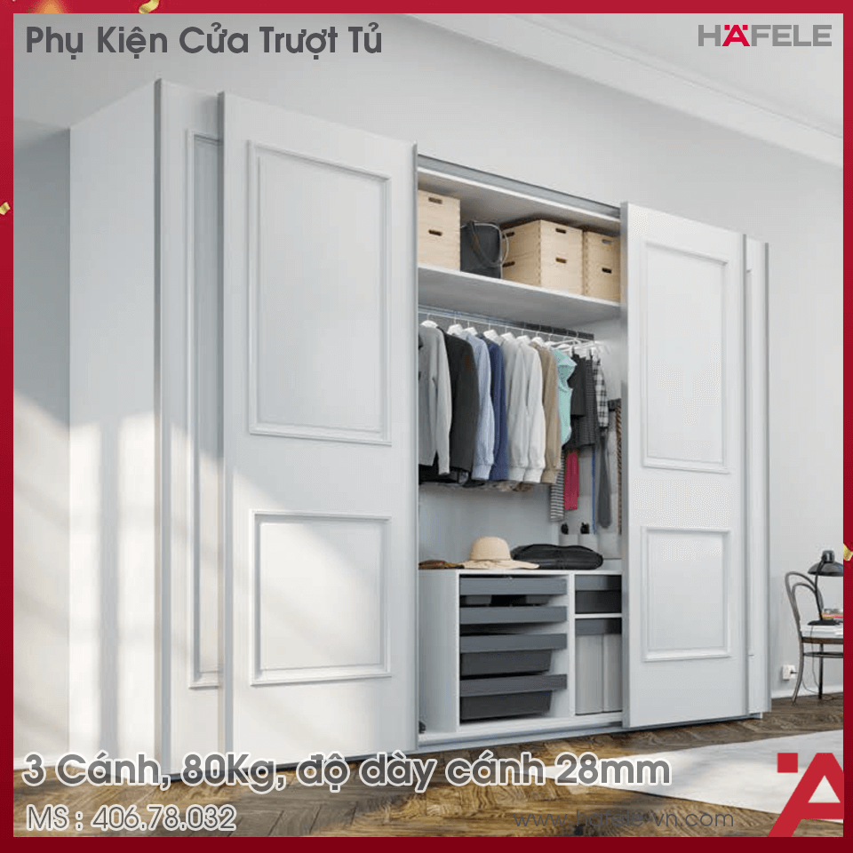 - Dành cho cửa 3 cánh, tải trọng 80Kg/cặp, độ dày cửa : 28mm