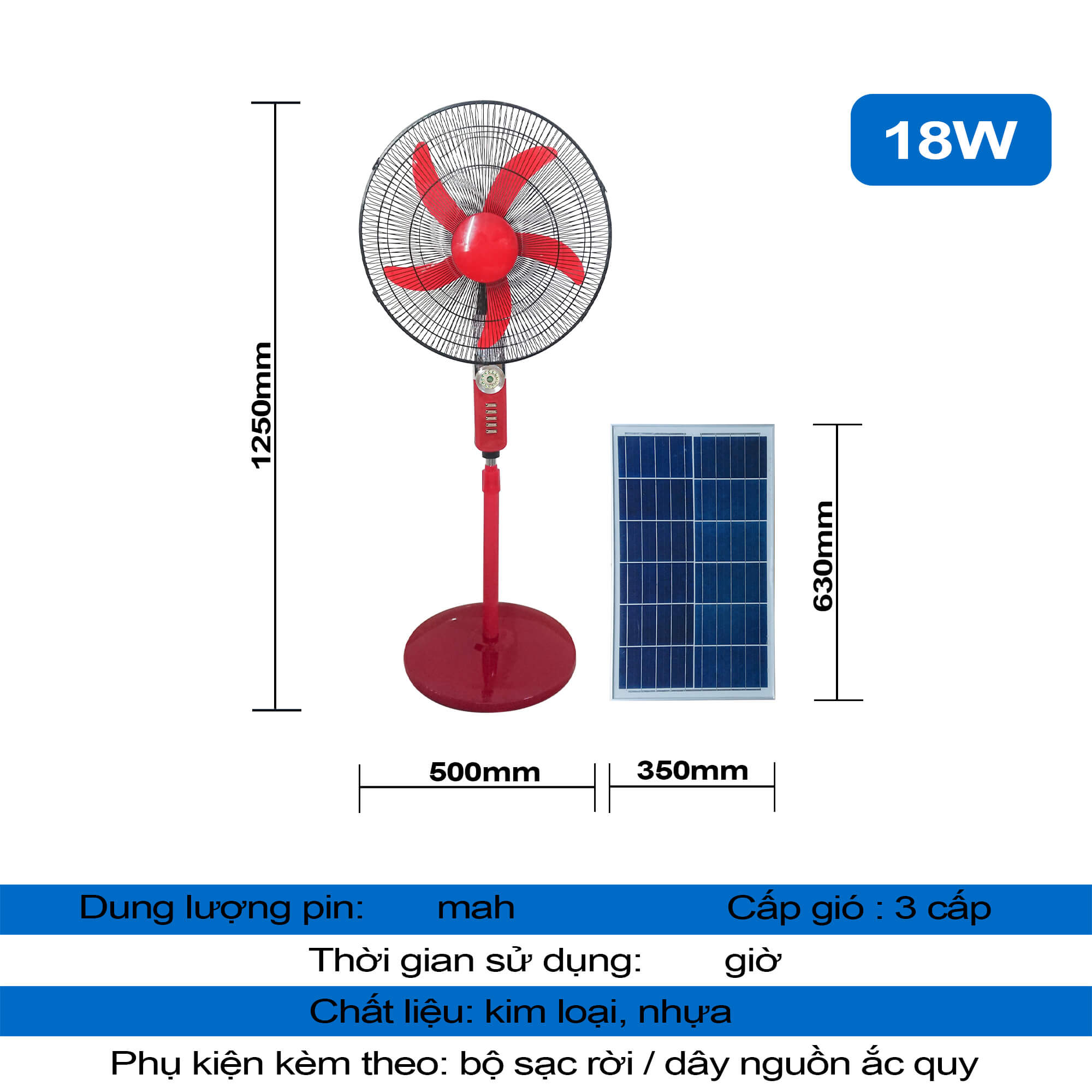 Phụ kiện trong hộp: 1 quạt, 1 tấm NLMT, 1 sạc rời, 1 sách HDSD, 1 dây cấp nguồn có đầu kẹp ắc quy