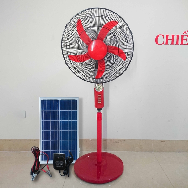 Bộ thiết bị sử dụng năng lượng chuyển hóa từ tấm pin năng lượng mặt trời cấp điện trực tiếp cho quạt.