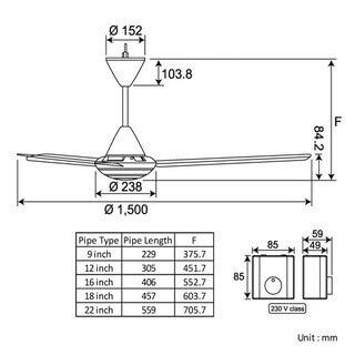 Quạt trần 3 cánh 66W F-60MZ2-KMS màu đen ti 22.8cm Panasonic động cơ khỏe, bền bỉ và nhiều gió hơn tất cả các loại quạt trần trang trí đã và đang có trên thị trường