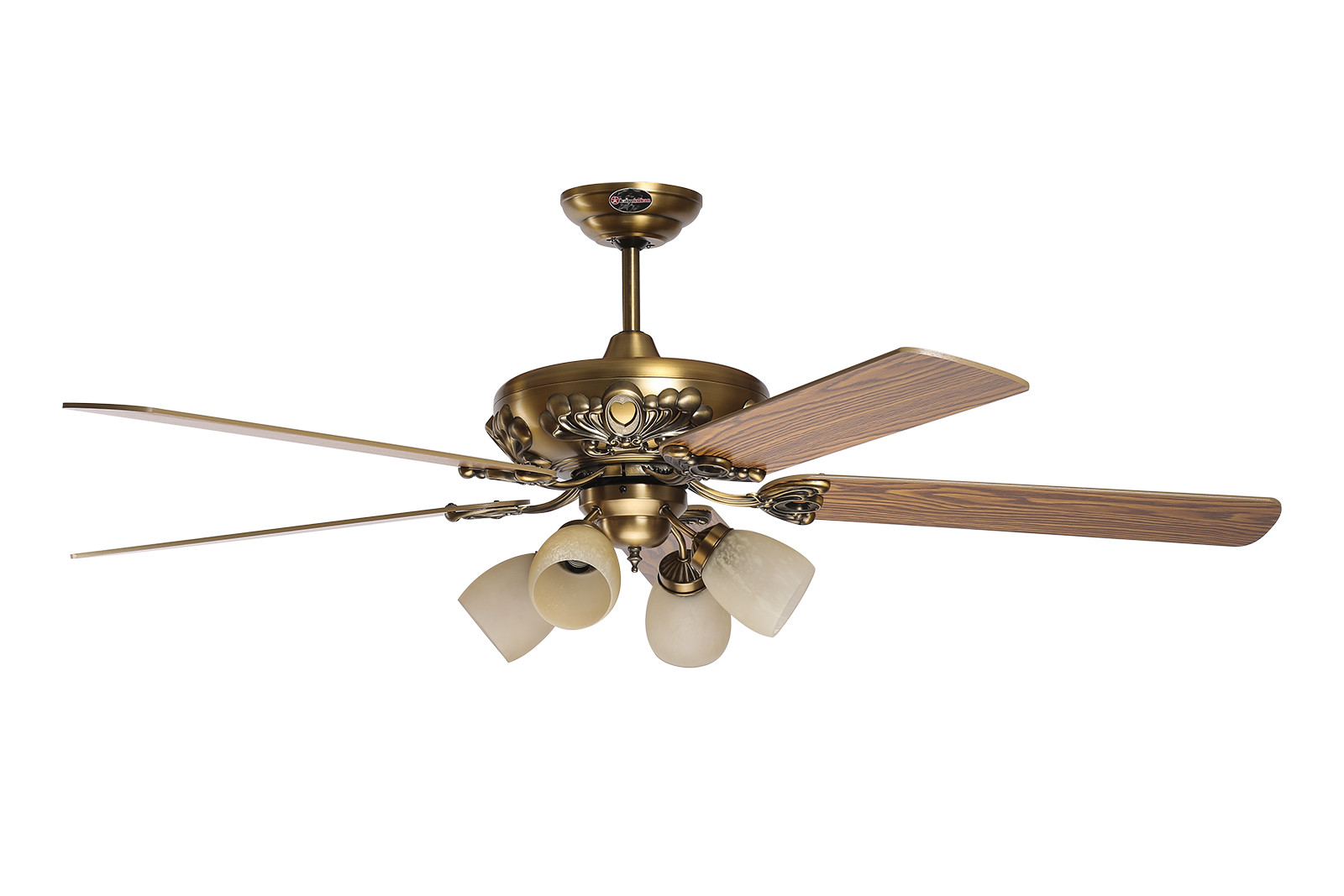 - Quạt được trang bị bộ đèn trang trí để tăng thêm tính thẩm mỹ cho căn phòng. Có thể dùng để trang trí thay thế đèn chùm. Khi bật đèn, ngoài việc chiếu sáng, mà ánh sáng càng làm nổi bật hơn những chi tiết, ánh đồng từ bầu quạt làm cho chiếc quạt thêm lung linh rực rỡ. Là một điểm nhấn ấn tượng trong không gian nhà bạn.