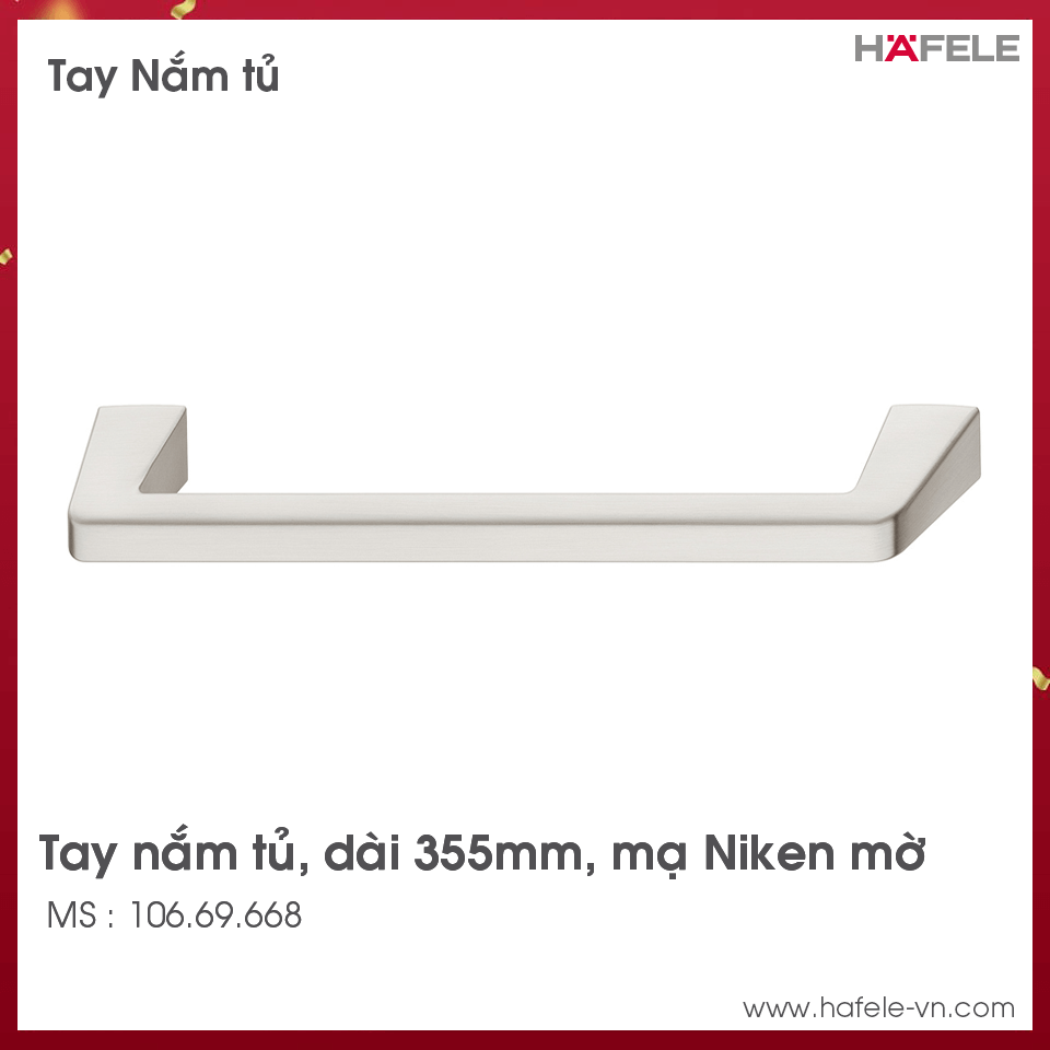 - Tay nắm tủ dài 355mm, mạ Niken mờ