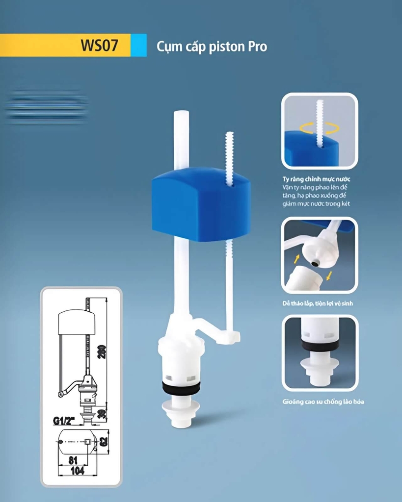 - Áp lực nước cấp: 0.2-8 kg/cm2.