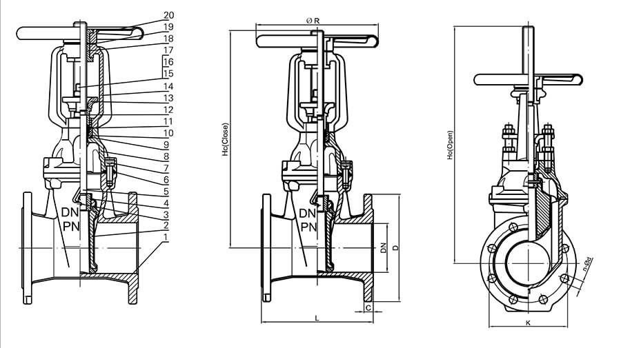 | DN | L | D | K | n-Ød | C | Hc | Ho | R | ||