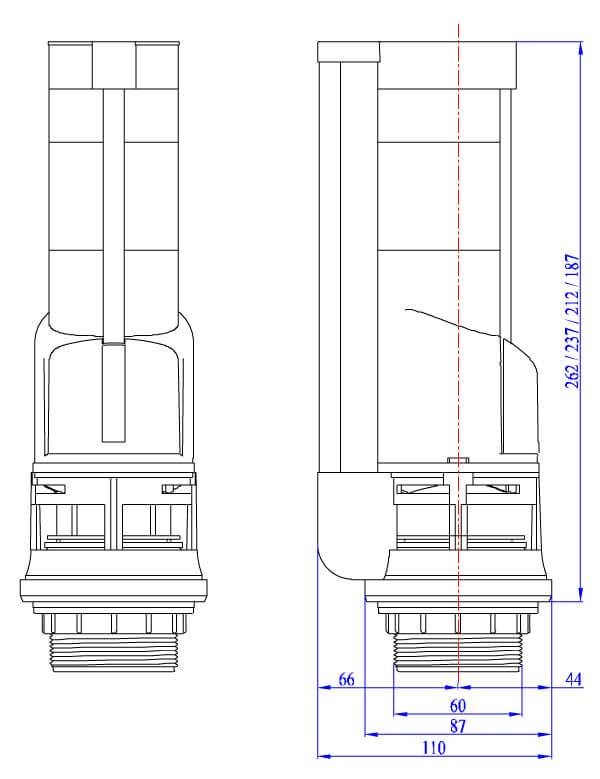 - Có 04 loại chiều cao: 262/237/212/187mm.