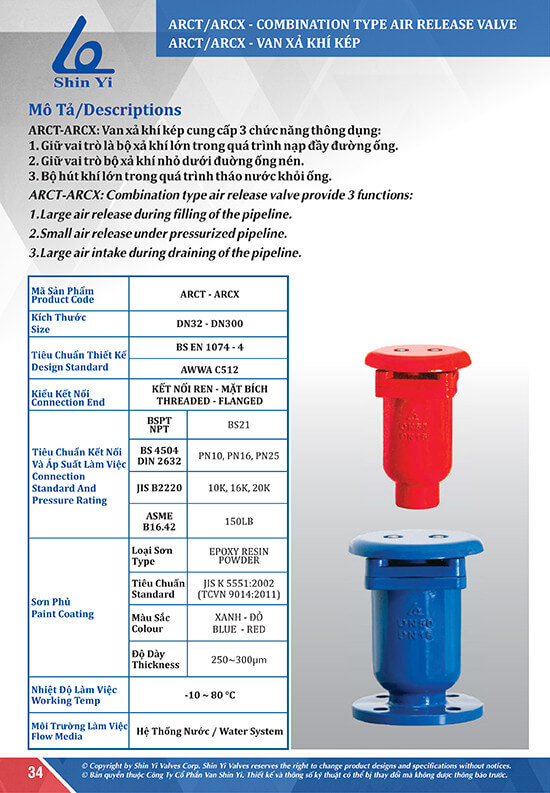 Bên Trong van là một hệ thống phao và lá van cao su, trên đỉnh van có 1 lỗ thoát khí.