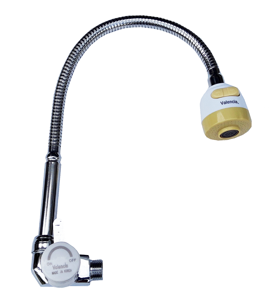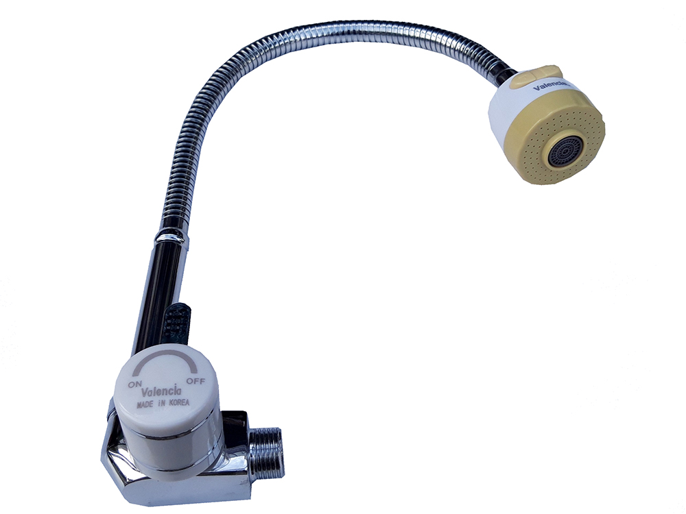 > Vòi rửa chén âm tường lò xo: ống dẫn được thiết kế dạng lò xo, dễ dàng điều chỉnh lên xuống, xoay 360 độ, phù hợp với nhiều vị trí sử dụng.